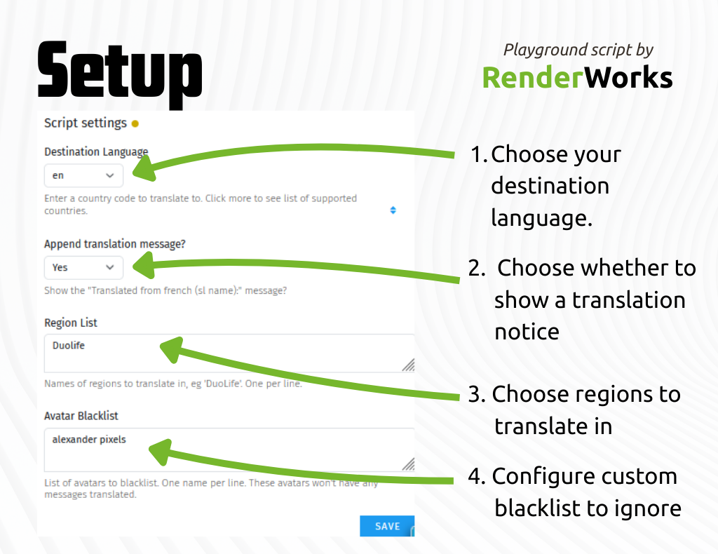 - You must define which regions to translate in, to avoid spamming